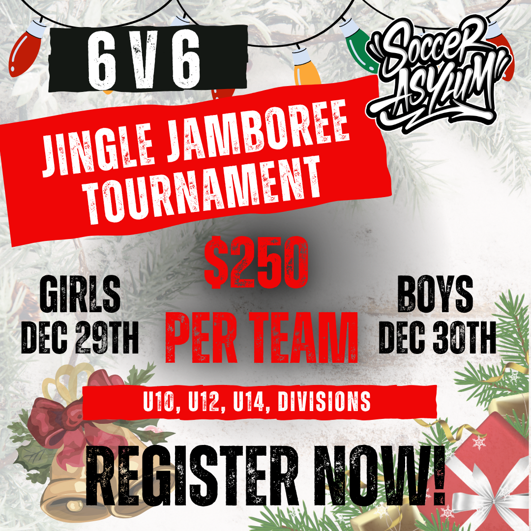 Join us this holiday season for fun and exciting competition in Soccer Asylum's annual 6v6 Jingle Jamboree Holiday Indoor Soccer Tournament. The Holiday Classic is a non-sanctioned tournament and accepts all teams, including club, intraclub, tournament teams, or even just a group of friends who want to play.